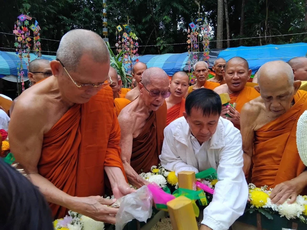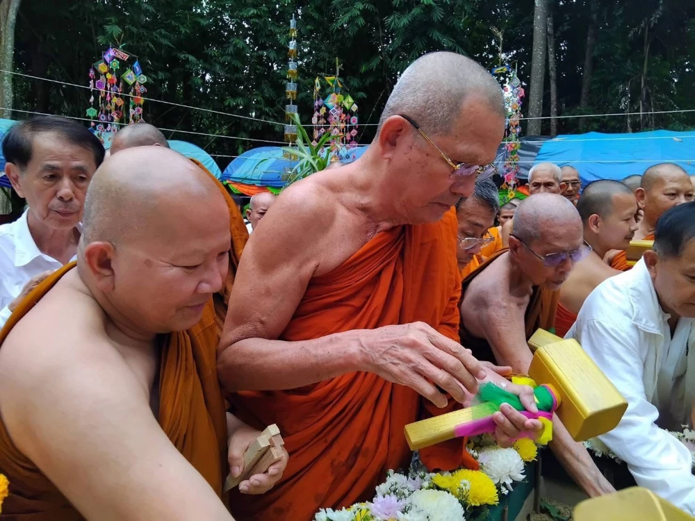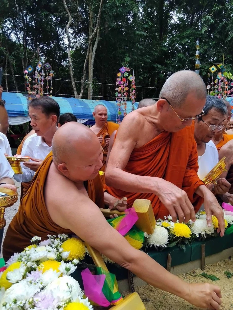 พระครูพิพัฒน์ศีลาจาร (ดิลก ปริสุทโธ ) เจ้าอาวาสวัดสิรินธรเทพรัตนาราม วางศิลาฤกษ์ สร้างพระมหาเจดีย์ พระอาจารย์ยันตระ อมโร ณ สำนักป่าสุญญตารามเกริงกระเวีย กาญจนบุรี 14 ตุลาคม 2568