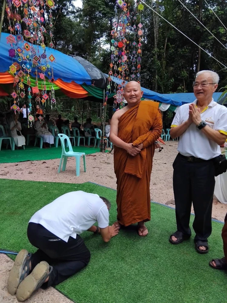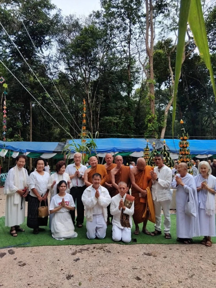 พระครูวิมลภาวนานุศาสตร์ (หลวงตาสายหยุด ปญฺญาธโร ) วัดป่าถ้ำวัว จังหวัด แม่ฮ่องสอน และ ครูพิพัฒน์ศีลาจาร (ดิลก ปริสุทโธ ) เจ้าอาวาสวัดสิรินธรเทพรัตนาราม วางศิลาฤกษ์ สร้างพระมหาเจดีย์