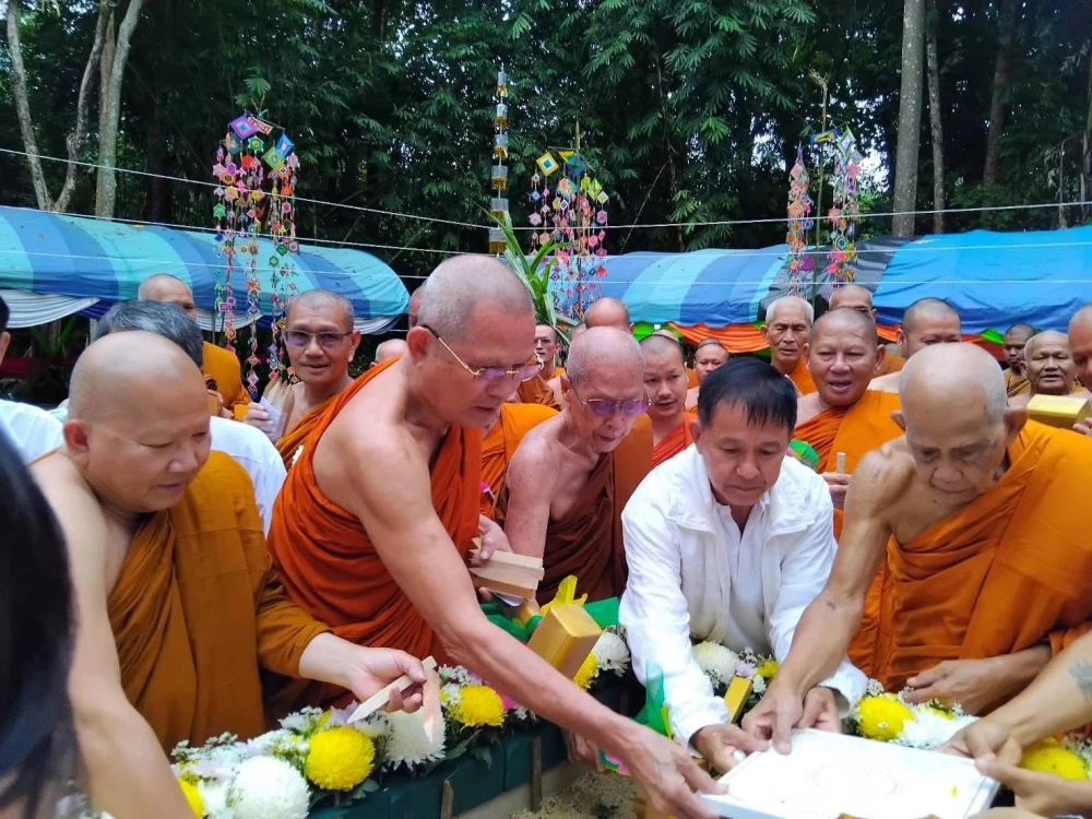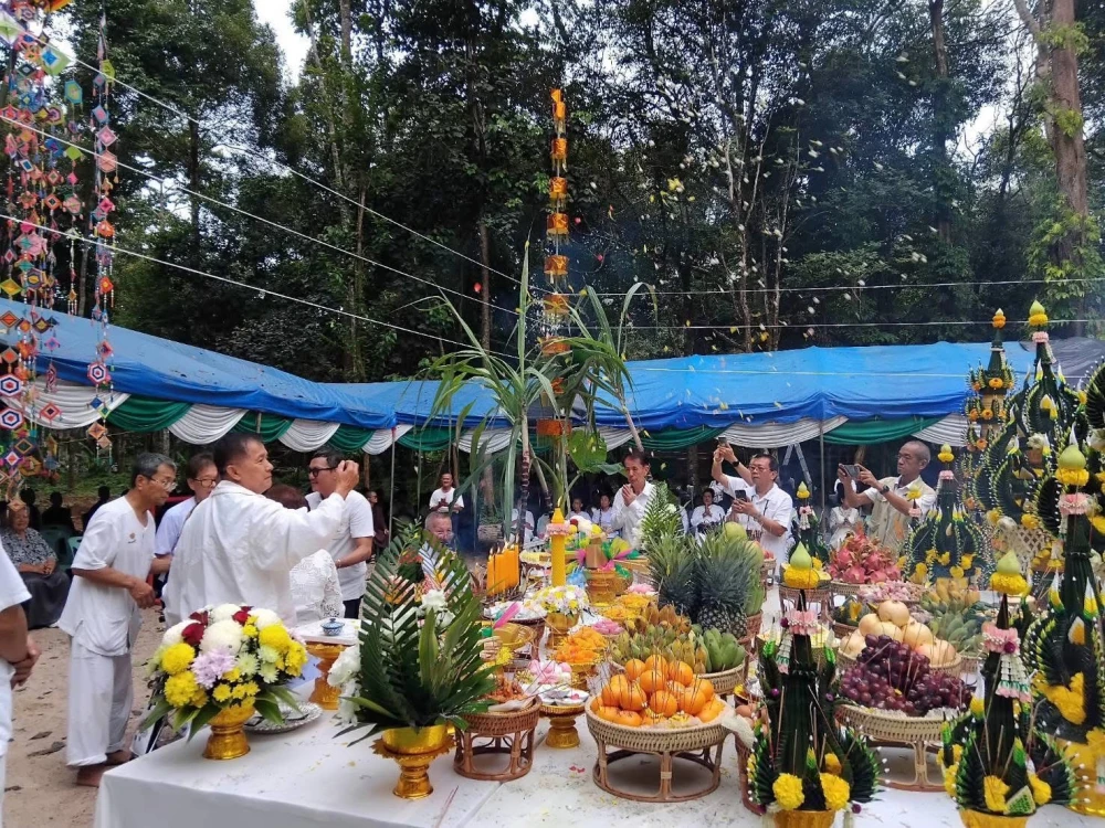พลเอกนคร สุขประเสริฐ และคุณแม่ดวงจันทร์ ประธาน วางศิลาฤกษ์ สร้างพระมหาเจดีย์ ประดิษฐาน สรีระ ท่านพระอาจารย์ 14 คุลาคม 2568 สำนักป่าป่าสุญญตาราม เกริงกระเวีย กาญจนบุรี