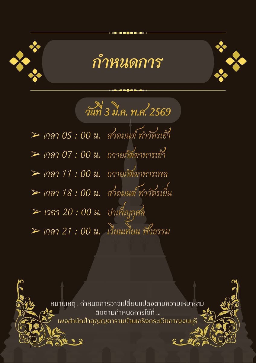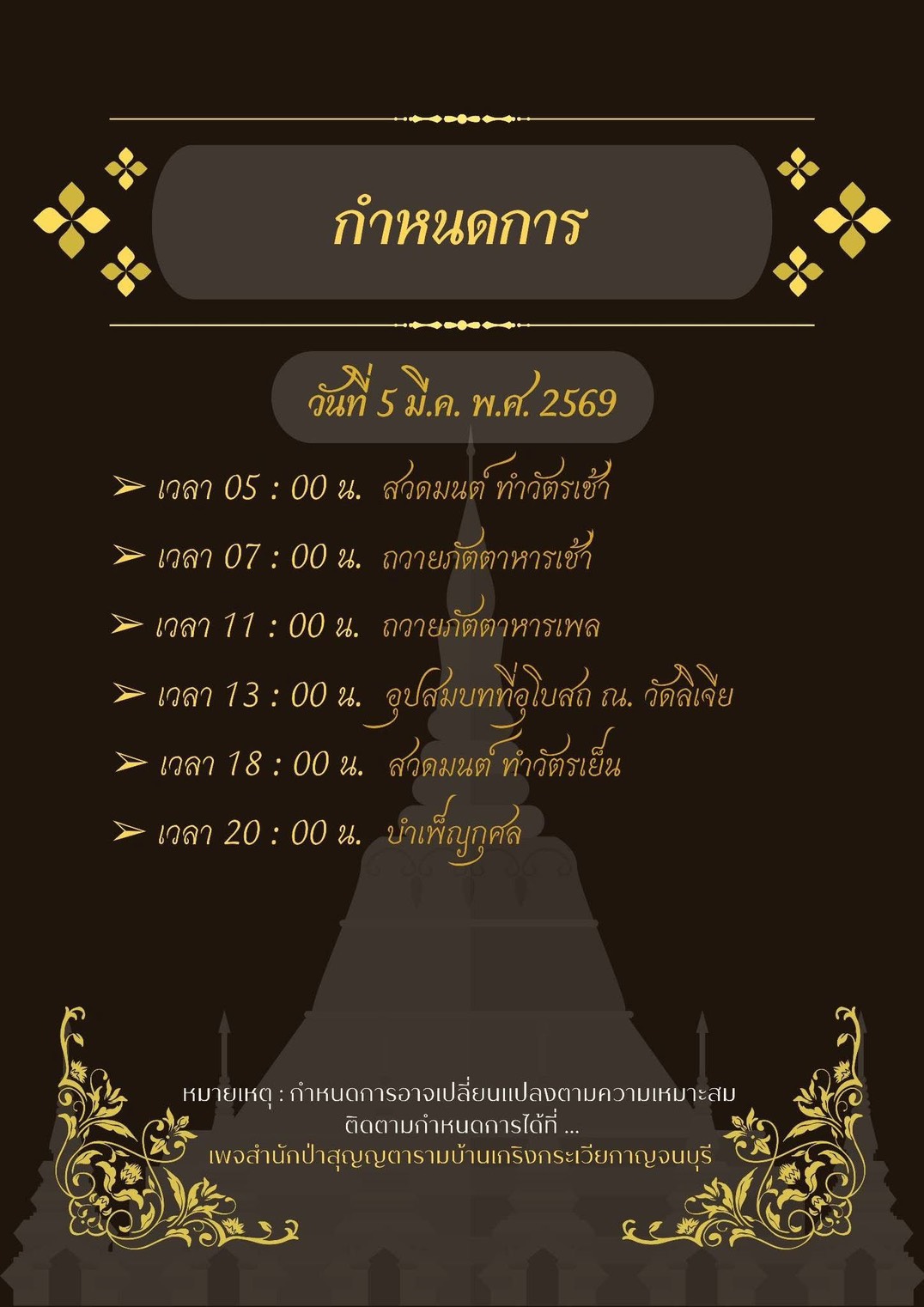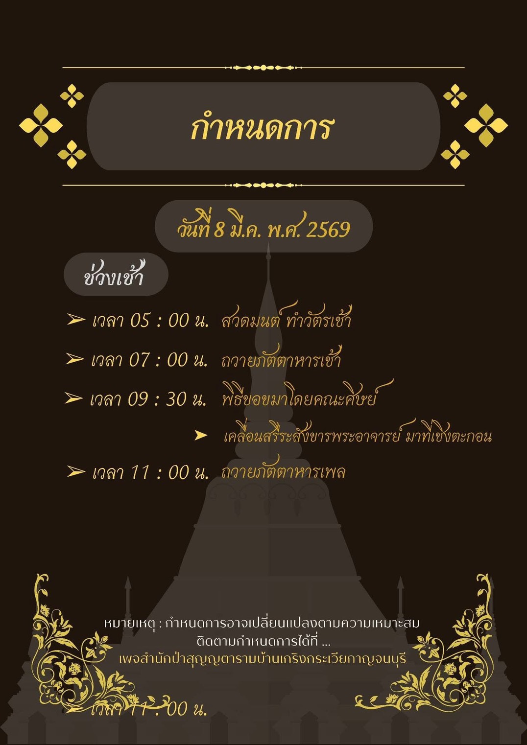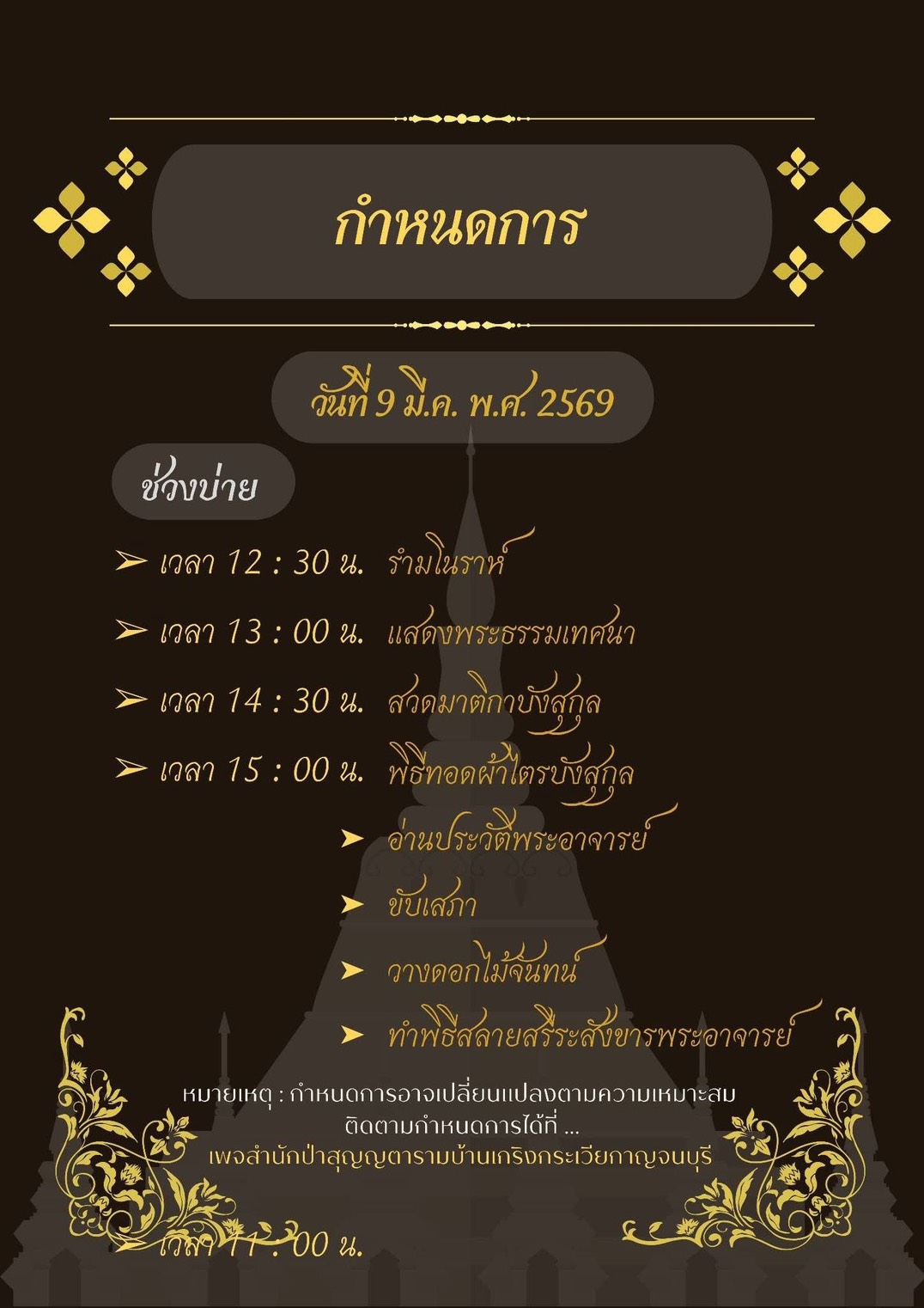 กำหนดการ งานสลายสรีระสังขาร พระอาจารย์ยันตระ อมโร 1 - 9 มีนาคม 2569