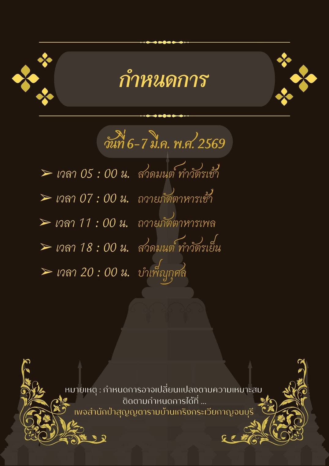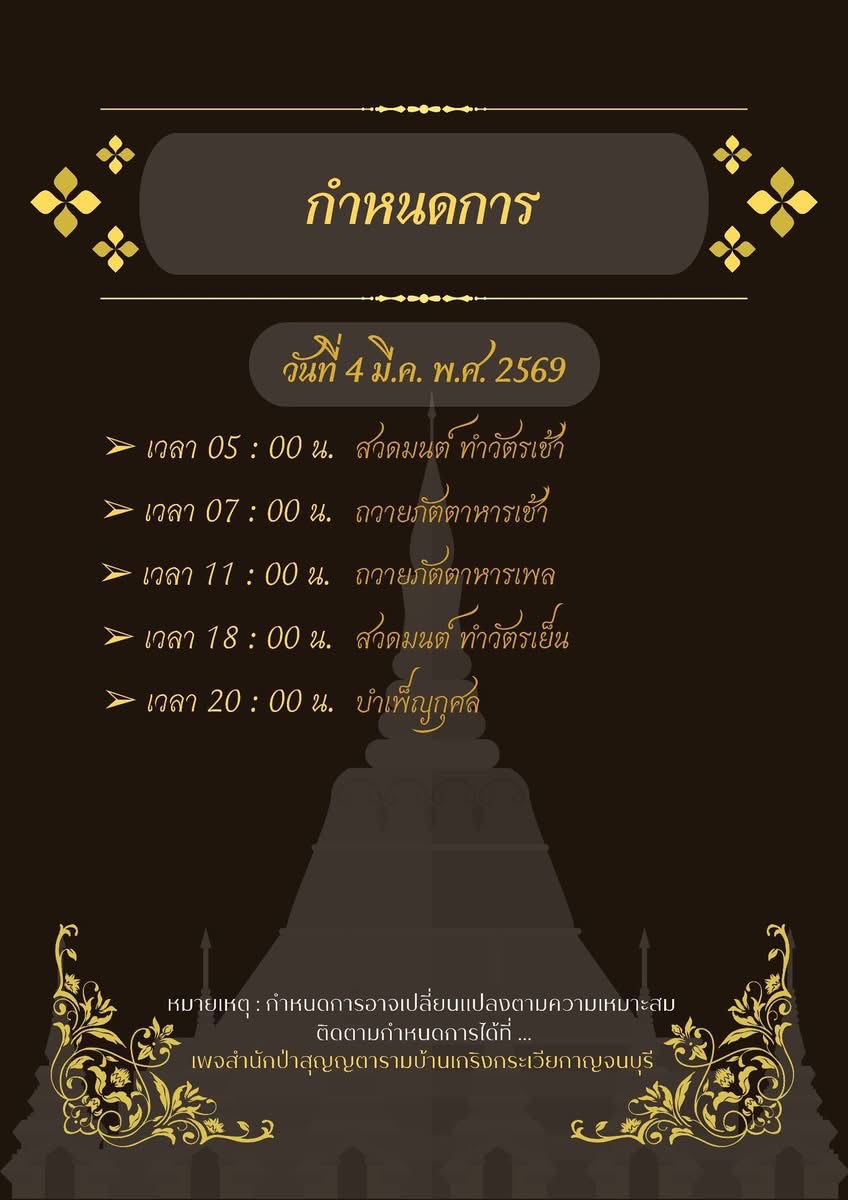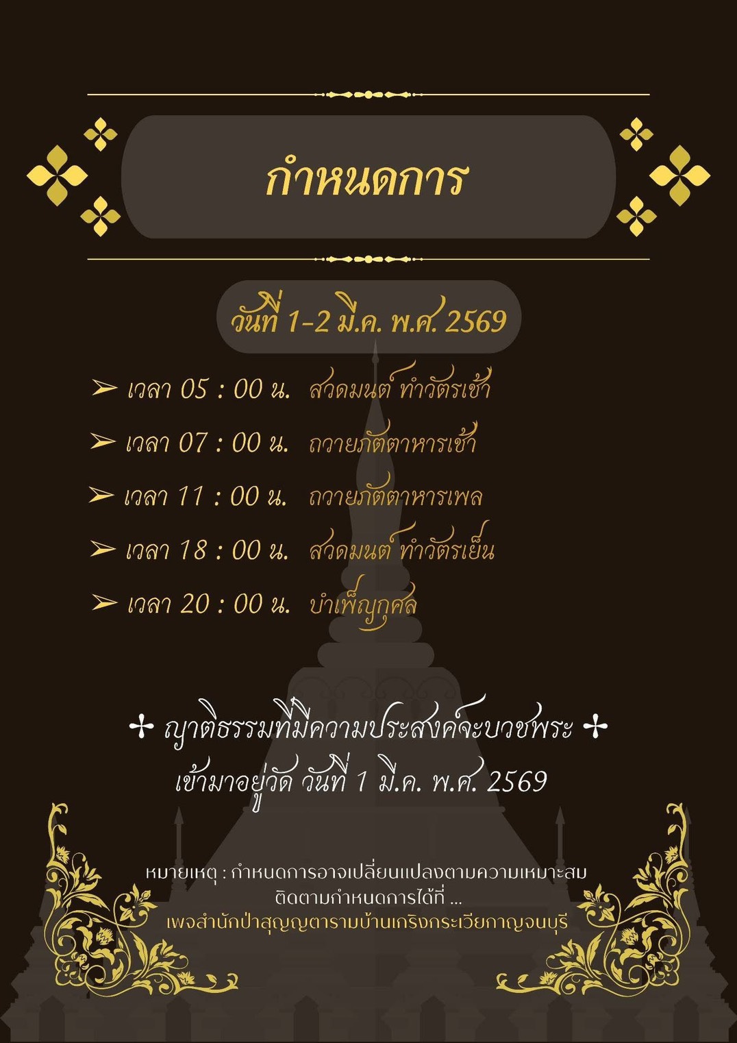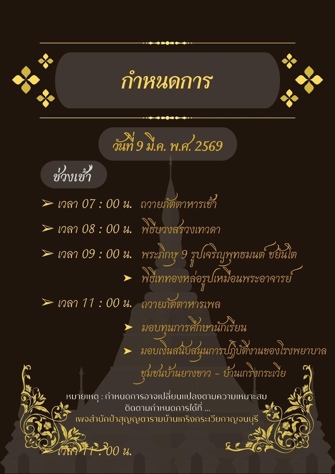 กำหนดการ งานสลายสรีระสังขาร พระอาจารย์ยันตระ อมโร 1 - 9 มีนาคม 2569