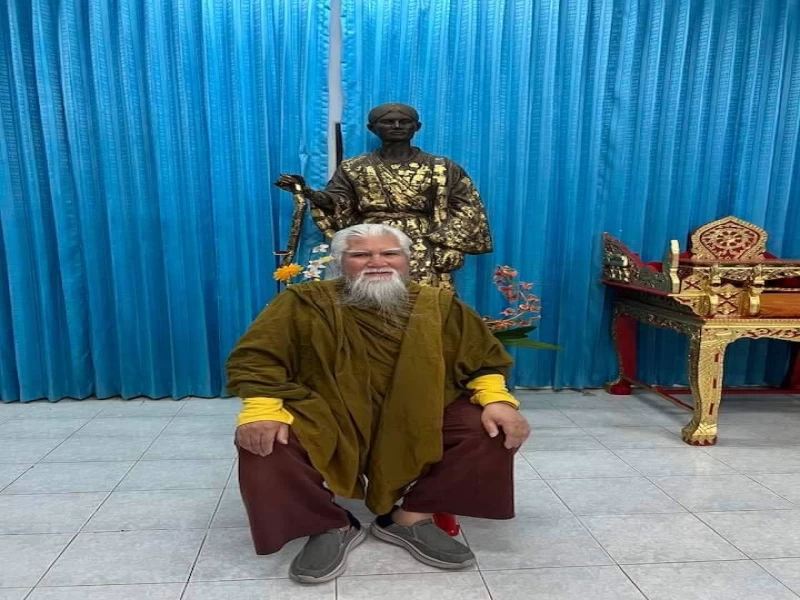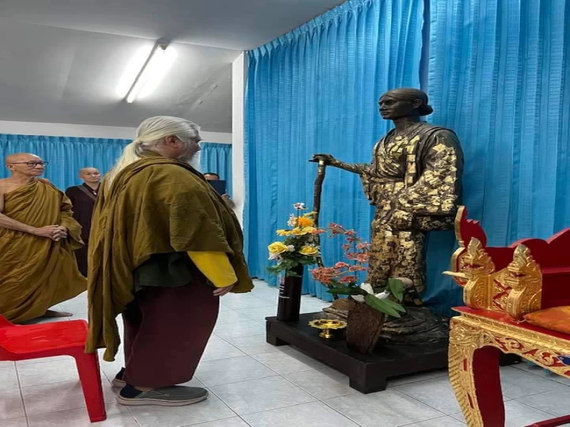 พระอาจารย์ยันตระ อมโรภิกขุ เยี่ยมรูปปั้น โยคียันตร ที่วัดพราหมณี (หลวงพ่อปากแดง)