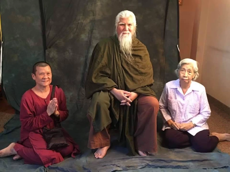 โยมศรีสุวรรณ (ขวาของภาพ) เจ้าภาพใหญ่กุฏิพระอาจารย์ยันตระ อมโรภิกขุ วัดป่าอมราราม ตำบล หนองตากยา อำเภอ. ท่าม่วง จ.กาญจนบุรี.8/10/23.