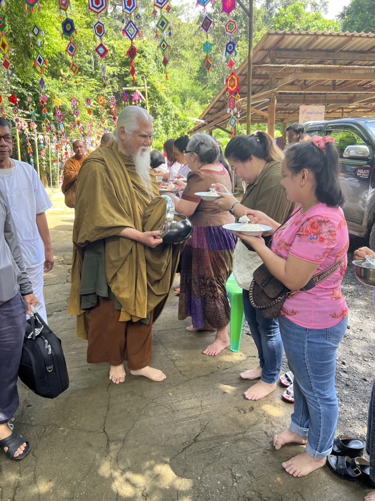 พระอาจารย์ยันตระ อมโรภิกขุ ออกรับบิณฑบาตรทุกวัน