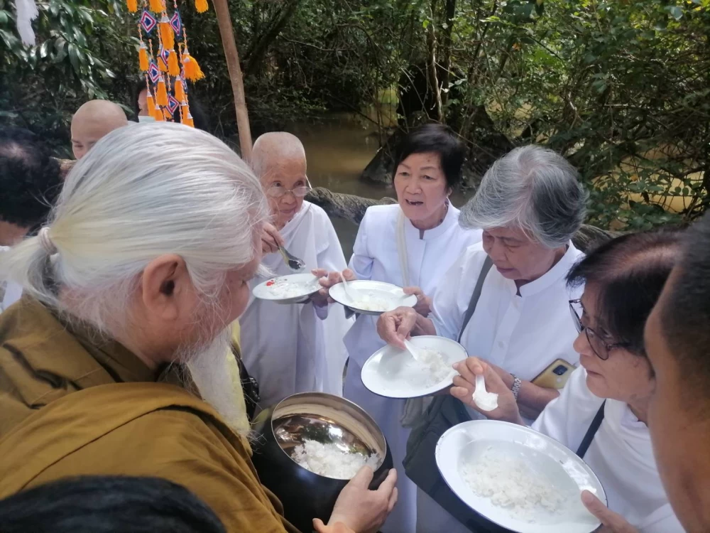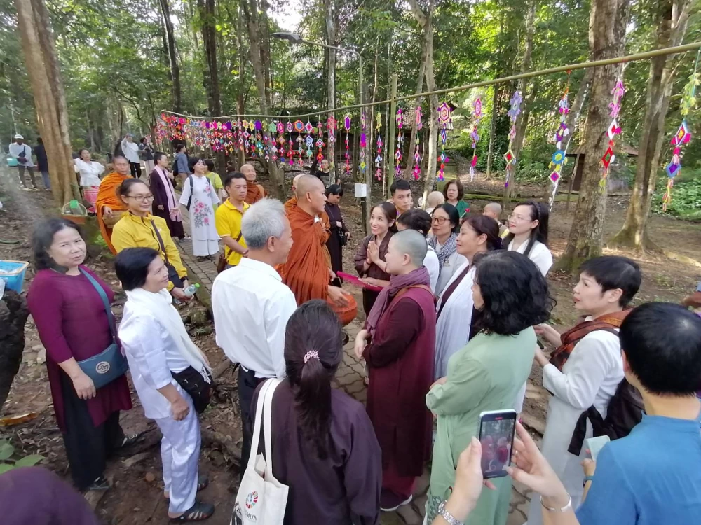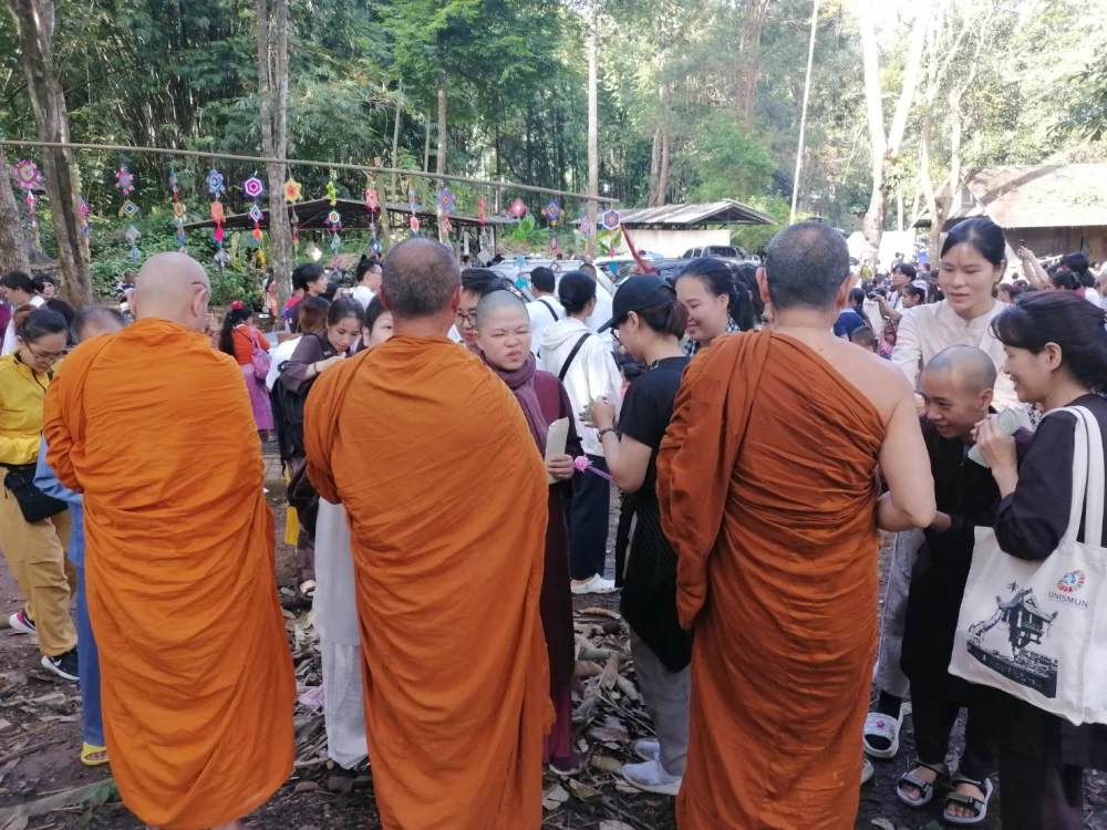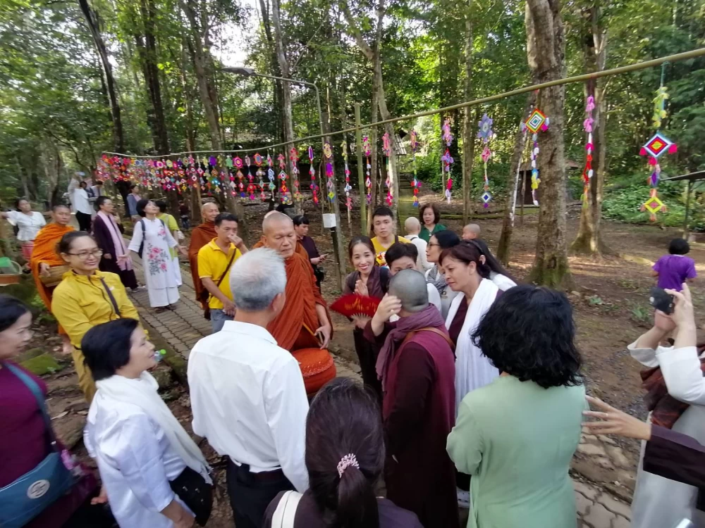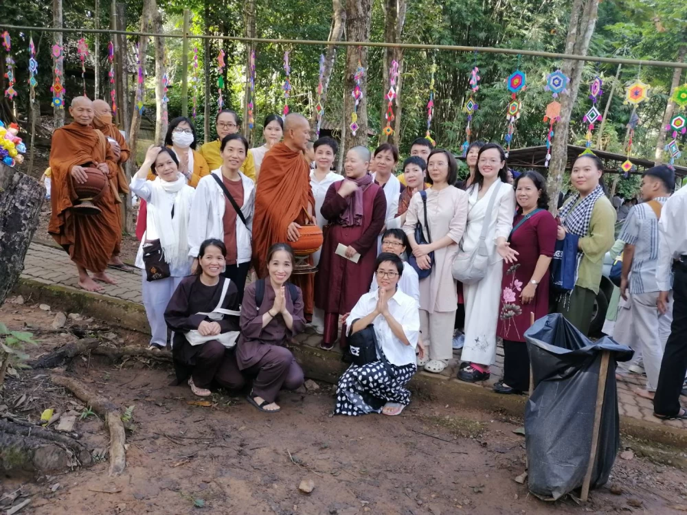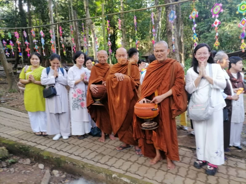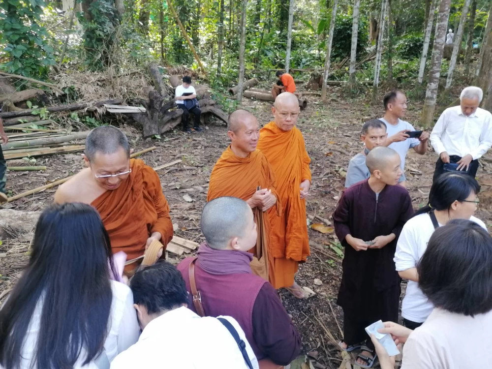 พระอาจารย์ยันตระ อมโรภิกขุ พระสมชาย เจ้าอาวาสพระธาตุหลวงจำไก่ ค้อนรับศรัทธาญาติโยมชาวเวียดนาม