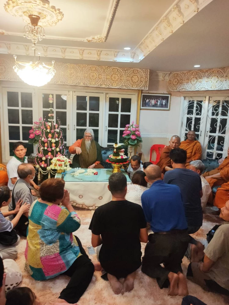 ทำพิธีขอขมา กับท่านพระอาจารย์ยันตระ อมโรภิกขุ ลูกศิษย์ ทุกคนมาเพื่อน้อมขอขมาท่านพระอาจารย์ยันตระ อมโรภิกขุ ที่บ้านปทุมสิริกร